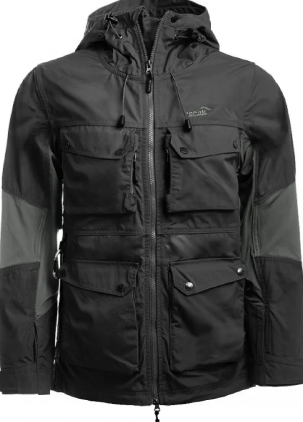 Arrak Hybrid Jacket on kyllästetty takki polyesterin ja puuvillan sekoitteesta. Takissa on joustavaa materiaalia olevat paneelit parhaan istuvuuden ja liikkuvuuden takaamiseksi. Takissa on myös säädettävä huppu ja tuuletusvetoketjut käsivarsien alla. Monien käytännöllisten taskujen ansiosta voit kuljettaa mukana kaiken, mitä tarvitset koiraa ulkoiluttaessasi. Takissa on iso vetoketjullinen takatasku, kaksi suljettavaa rintataskua sekä sivuilla vetoketjulliset taskut. Alareunassa on myös kaksi suurta läpällä suljettavaa taskua, joiden alla on myös vetoketjulliset sivutaskut. Lisäksi yksi taskuista on päällystetty sisäpuolelta helposti pestävällä ja vedenpitävällä nailon-vuorella, joten voit kuljettaa huoletta mukanasi koiran herkkuja. Takki soveltuu kaikenlaiseen ulkoiluun muillekin kuin koiranomistajalle.