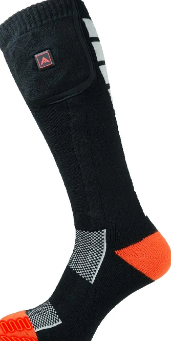 Villan ja lämpöelementtien yhdistelmän ansiosta pysyt helposti lämpimänä riippumatta siitä, käytätkö niitä monoissa vai saappaissa. Lämpöä ohjataan sukan ulkopuolella olevalla painikkeella, joka on sijoitettu korkealle sukan päälle niin, että se jää useimpien jalkineiden yläpuolelle.
