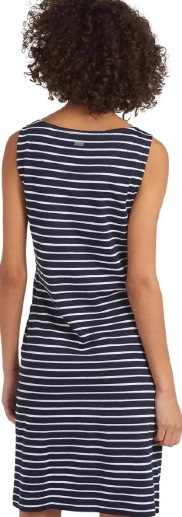 Barbour Dalmore Stripe Dress on klassinen rantatyylinen mekko, joka sopii loistavasti lämpimiin päiviin. Vaate on valmistettu puuvillan ja viskoosin sekoituksesta. Dalmore-mekossa on pyöreä pääntie ja sivutaskut. Tyylin viimeistelee rinnassa komeileva Barbour-logo.
