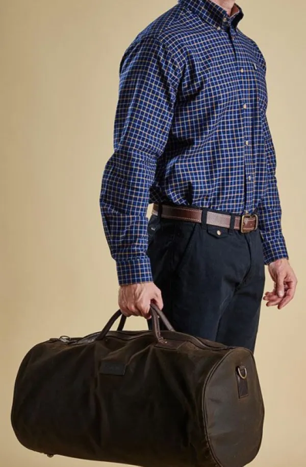 Tyylikäs vahakankainen viikonloppulaukku nahkaisin yksityiskohdin ja irroitettavalla olkahihnalla. Vahakangas hylkii erinomaisesti likaa ja kosteutta, ja on juuri sopivan kokoinen viikonloppureissua varten.