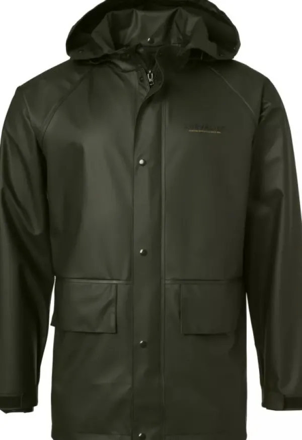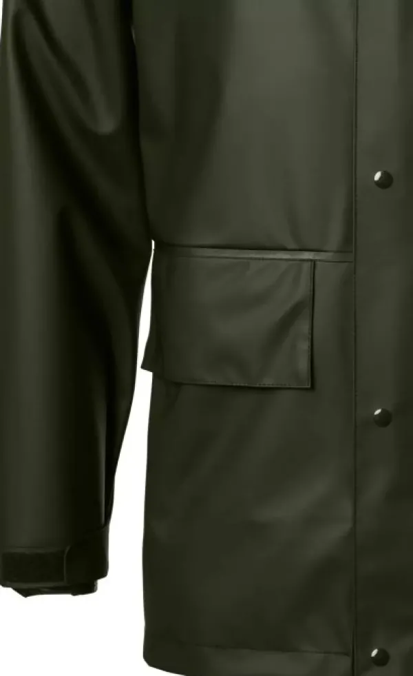 Stratus-sadetakki suojaa sinua sekä sateelta että tuulelta vedenpitävän PU-materiaalin ja hitsattujen saumojen ansiosta. Takissa on klassinen istuvuus, jossa on kaksinkertainen etuläppä ja lisäreuna, joka estää veden tunkeutumisen takin sisään. Takissa on kaksi etutaskuläppää ja Raglan-leikkaus lisää liikkuvuutta. Huppu on sekä säädettävä takaa ja se voidaan rullata kaulukseen. Hihansuut ovat säädettävissä tarranauhalla.