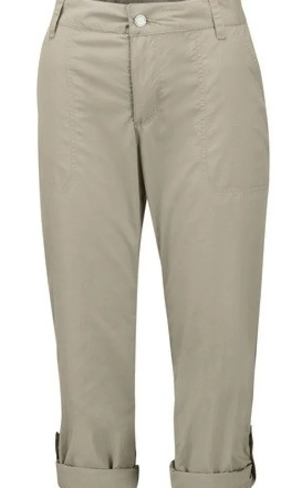 Suoralahkeisissa housuissa on säädettävä vyötärö. Käytännöllisiä taskuja löytyy runsaasti, mukaan lukien vetoketjullinen turvatasku. Lämpimämmällä säällä housut saa käärittyä polvimittaan, lahkeista löytyy nappikiinnitys tähän tarkoitukseen.