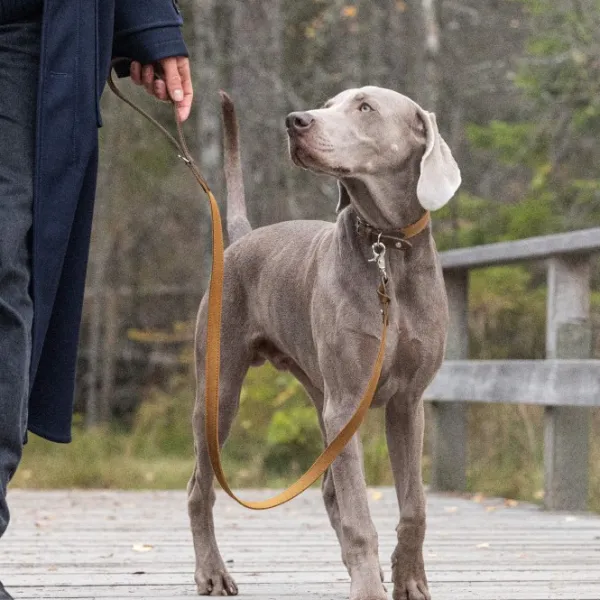 Signature-mallistolle on ominaista ajaton ja ylellinen muotoilu, jossa on vahattu puuvillatekstiili yhdistettynä punottuihin nahkayksityiskohtiin. Tässä talutushihnassa on tukeva ja mukava kahva pehmeää laatunahkaa Italiasta.