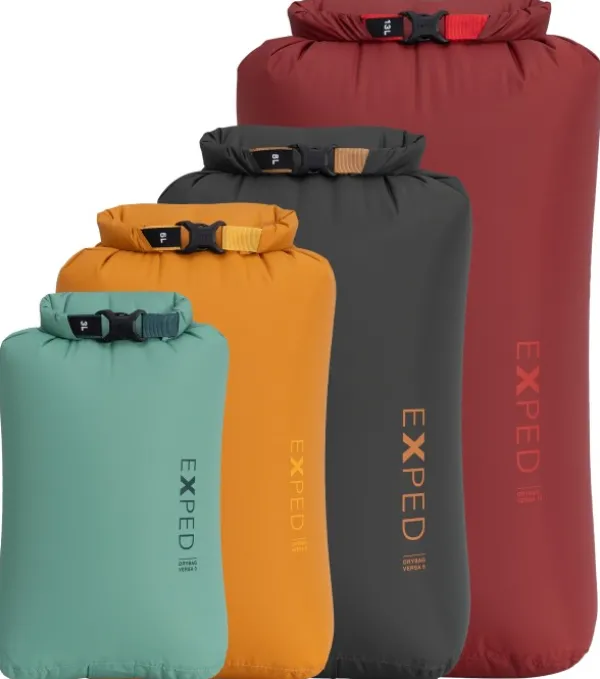 Versa Compression Expediltä on neljän kuivapussin setti, joka sopii täydellisesti, kun haluat optimoida kaiken käytettävissä olevan tilan pakkauksessasi. Kompaktoi varusteesi ja vaatteesi, jotka tarvitsevat tehokasta suojaa vedeltä, ja pakkaa kuivat vaihtovaatteet luisteluretkelle tai säilytä untuvamakuupussi kuivana ja siistinä.