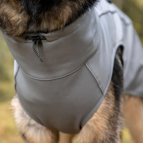 FinNero Softshell-takki Sport on saanut pidennetyn ja uudelleen muotoillun helman paremman peittävyyden takaamiseksi. Takki suojaa tuulelta ja sateelta vettähylkivän kankaan ansiosta. Joustava materiaali mukailee koiran liikkeitä.