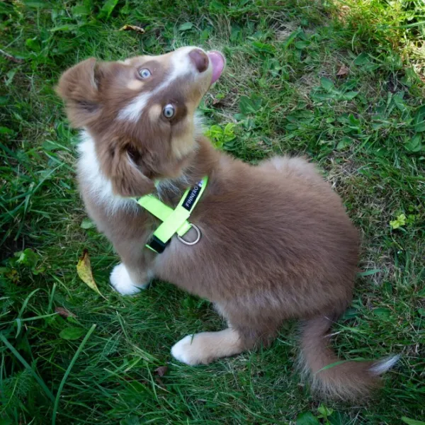 Rintalevyyn sijoitettu vetämistä estävä rengas on täydellinen opettaessa hihnakäytöstä. Heijastavat elementit lisäävät turvallisuutta myöhäisillan ja yöaikaisten kävelyiden aikana.