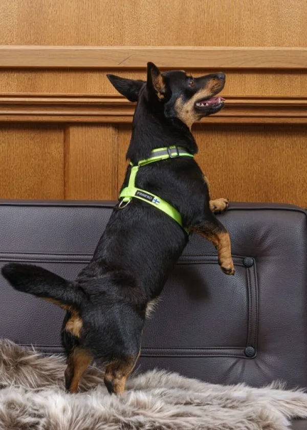 Säädettävä FinNero SALO valjaat tarjoavat ratkaisun moniin tarpeisiin. Sen suuren säädettävyyden ansiosta tämä koiran valjas sopii erinomaisesti kasvavalle pennulle.