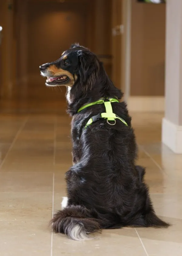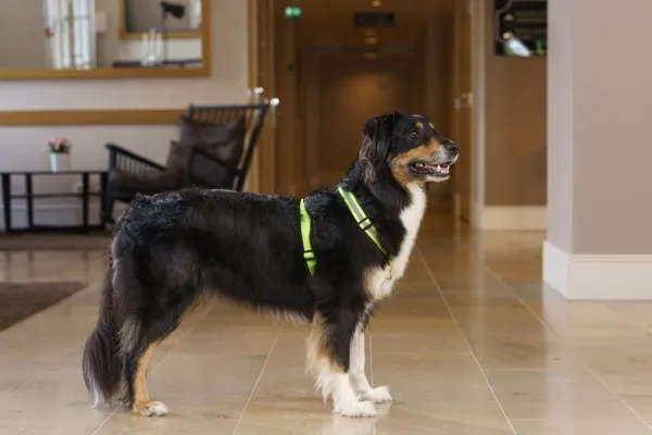 Oikein säädetyt valjaat istuvat tiukasti koiran ympärillä, joten voit työntää sormet valjaiden ja koiran väliin.