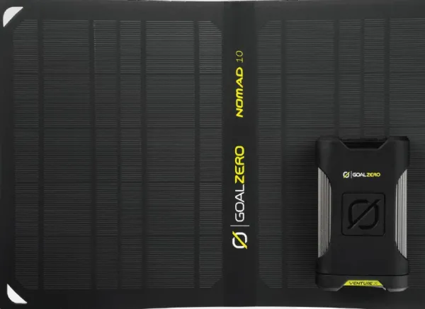 Goal Zeron Venture 35 Solar Kit sisältää Venture 35:n ja Nomad 10:n. Yhdessä ne antavat sinulle loputtoman valikoiman vankkaa ja kannettavaa tehoa. Sarja sopii täydellisesti ulkoiluun ja on apuna hätätilanteissa. Virtapankki on pöly- ja vesitiivis IP67-luokituksella. Venture 35:ssä on 18 W USB-C Power Deliver -portti, joka mahdollistaa nopeamman latauksen. Siinä on myös kaksi USV-lähtöä, joten voit ladata useita laitteita samanaikaisesti. Lataa se verkkovirrasta tai liitä se Nomad 10:een saadaksesi virtaa suoraan auringosta.