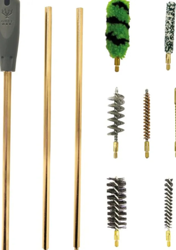 Sisältää tukevan 3-osaisen puhdistuspuikon, 2 nailonharjaa, 2 puuvillaharjaa, messinkiharjan, spiraaliharjan sekä vetosilmukan.