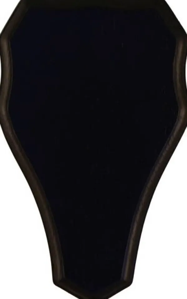 Tumma, tammesta valmistettu kauristrofeen taustalevy. Mitat: 23 x 14 cm.