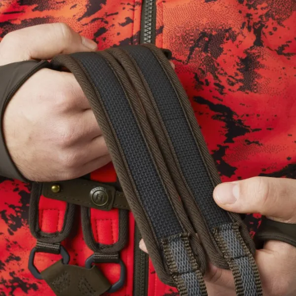 Härkila Wildboar Pro on monikäyttöinen asehihna. Sitä voidaan käyttää tavallisena asehihnana, mutta se voidaan myös napsauttaa kahtia. Näin voit kantaa asetta selässäsi kuin reppua, kun joudut kävelemään pitkiä matkoja tai kun haluat pitää kätesi vapaana. Hihnan takana on luistamatonta materiaalia, jotta se ei liu’u pois olkapäiltä. Hihna on valmistettu erittäin kestävästä nailon- ja polyesterimateriaalista.