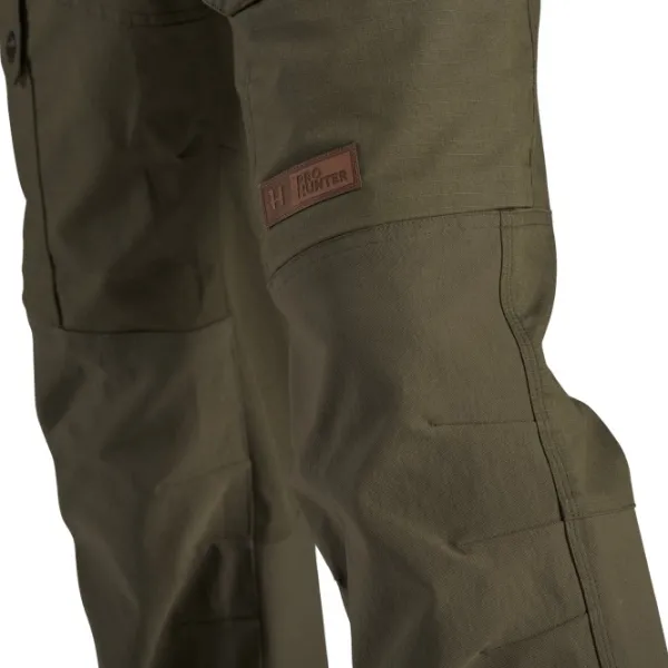 Muotoillut polvet lisäävät housujen mukavuutta kävellessä, ja vyötärön vasemmalla puolella on D-rengas erilaisten varusteiden kiinnittämiseen. Pro Hunter Light -housuilla on 5 vuoden takuu, joka kattaa kaikki materiaali- ja valmistusvirheet.