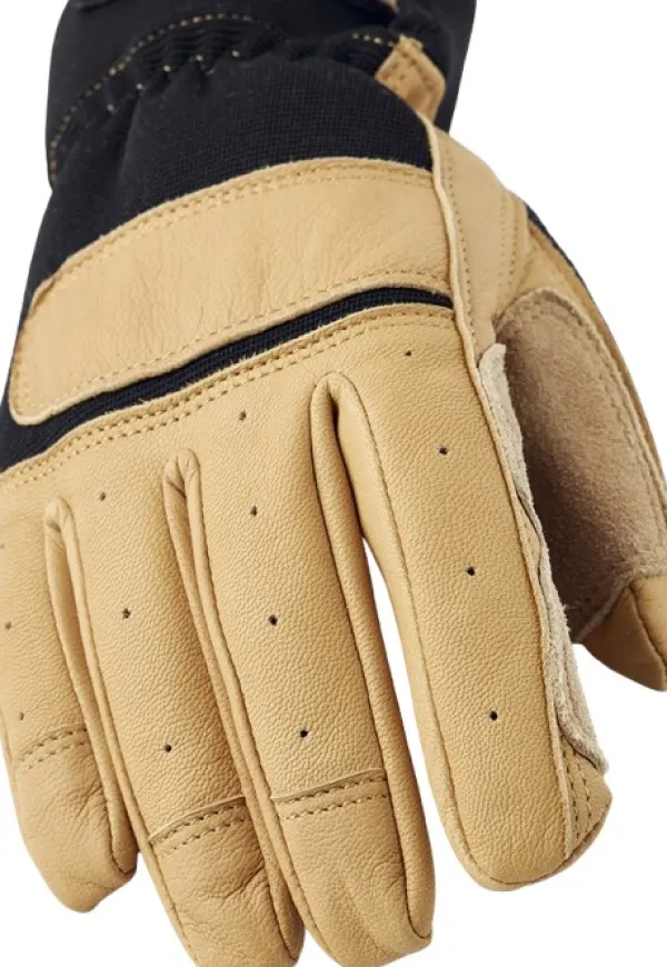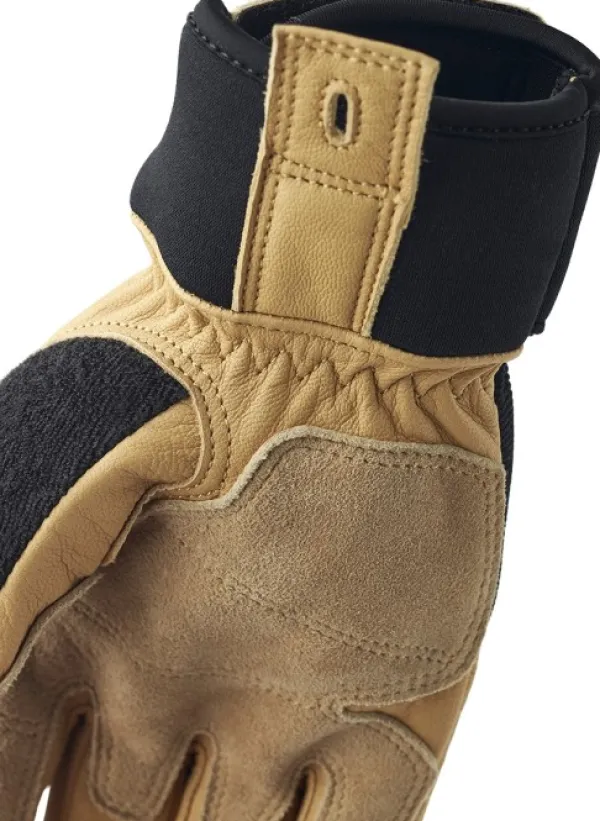 Käsine on ommeltu kestävästä vuohennahasta, ja siinä on joustava polyesteritrikoo yläosa. Kämmen ja peukalo ovat vahvistettu ylimääräisellä kerroksella vuohennahkaa parantamaan otetta ja kestävyyttä.