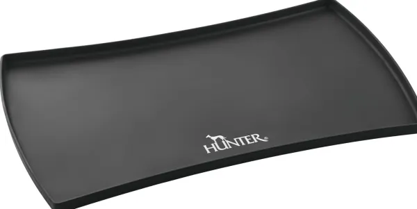 Läpinäkyvästä, mustasta silikonista valmistettu alusta HUNTER-painatuksella.