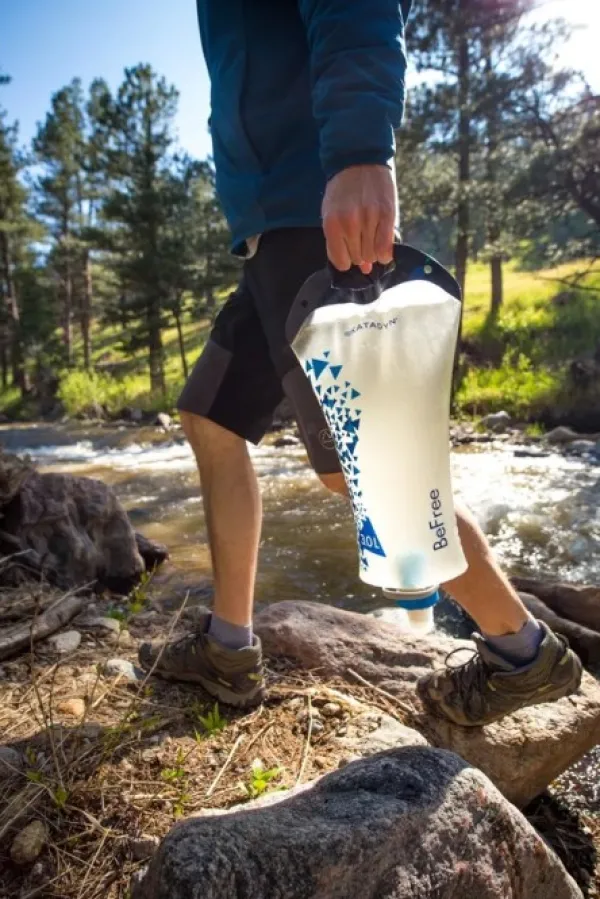 BeFree Gravity 3L -vedenpuhdistin painaa vain 192 grammaa ja puhdistaa painovoiman avulla jopa 2 litraa juomavettä minuutissa. Käyttö on erittäin yksinkertaista, täytä mukana toimitettu Hydrapack- vesipussi vedellä ja ripusta se, niin vesi kulkee Katadynin EZ-Clean Membrane™ -suodattimen läpi, joka poistaa bakteerit, mikro-organismit ja sedimentin.