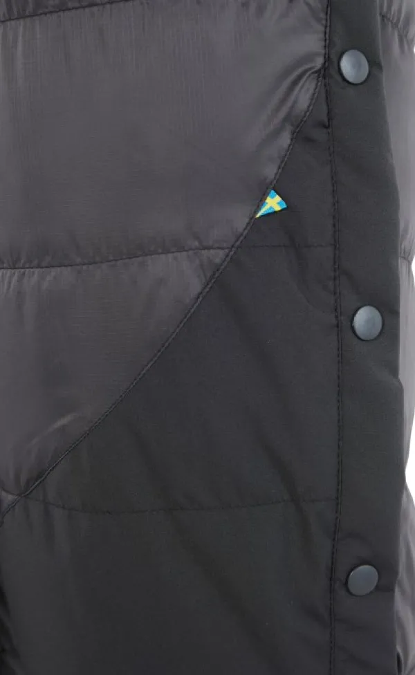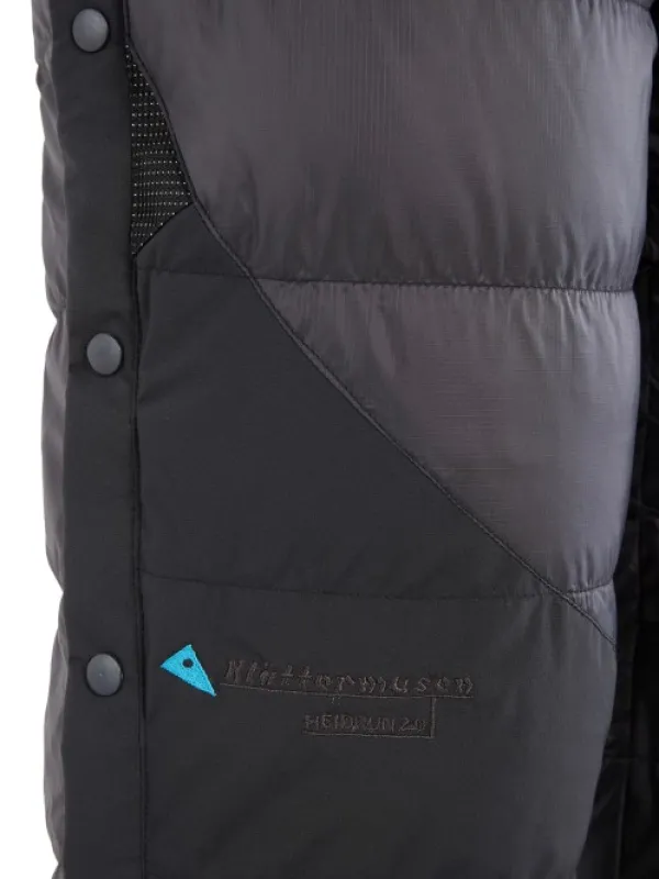 Heidrun 2.0 -toppashortsit on eristetty 800+ Fill Power -untuvalla, joka on RDS-sertifioitua ja täysin jäljitettävissä. Sivuilla olevat napit helpottavat housujen pukemista ja riisumista, eikä sinun tarvitse riisua monoja, kenkiä tai housujasi pukeaksesi shortsit jalkaasi. Päällyskangas on painoonsa nähden todella kestävää. Shortseissa on oleellisissa paikoissa vahvikkeet. Erinomainen vaihtoehto makuupussille kylminä öinä. Vyötärö on säädettävissä joustavan nyörin avulla. Mukana tulee pieni pakkauspussi, jotta saat shortsit kätevästi mukaasi. Kaikinpuolin Heidrun 2.0 -toppashortsit ovat kestävät, lämpimät ja pehmeät housut talvipakkasille.