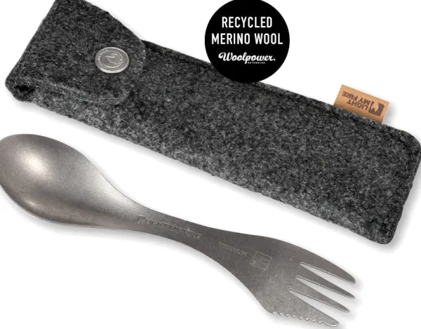 Ikoninen Spork Titanium kestää kovimmatkin haasteet! Rikkoutumaton, monikäyttöinen ruokailuväline mukaan otettavaksi pitkille ja lyhyille retkille. Spork on myrkytön, ruostumaton ja helppo puhdistaa. Ei-magneettinen sekä ilman metallin makua. Erinomaisesti muotoiltua sporkia on mukava käyttää. 100 % luokan 2 titaania tarkoittaa äärimmäistä lujuutta ja kestävyyttä. Sporkin mukana tulee merinovillainen säilytyskotelo.