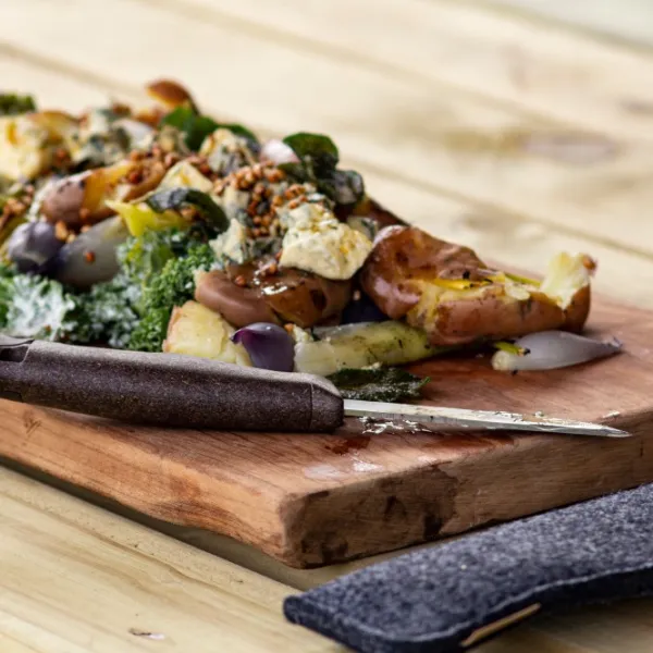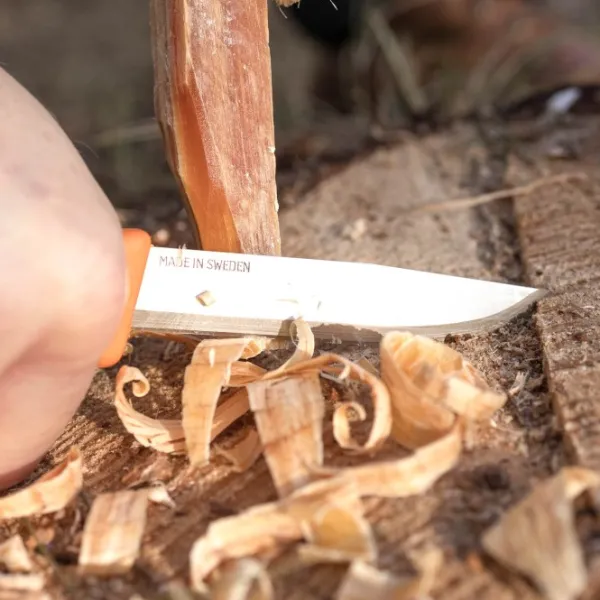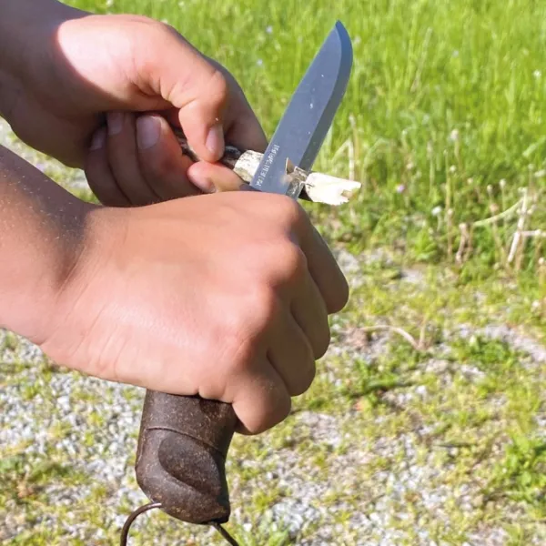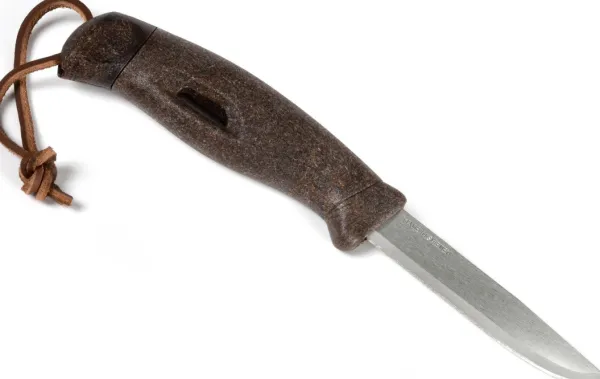 Ruotsalaisvalmisteinen puukko sisäänrakennetuilla tuluksilla. Kahva biomuovia sekä kookoskuorta