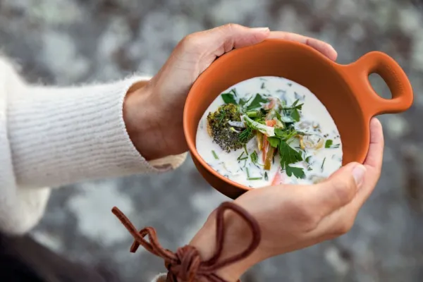 Täytä se raikkaalla purovedellä tai täyteläisellä keitolla. Kahvassa on pieni aukko, joten voit ripustaa kupin reppuun tai vyöhön, jotta se on aina valmiina. Kuppi on pinottavissa, kun niitä on useita, ja se voidaan myös pakata lounaslaatikkoon ja astiasarjaan. Sisäpuolella on käytännöllinen mittataulukko.