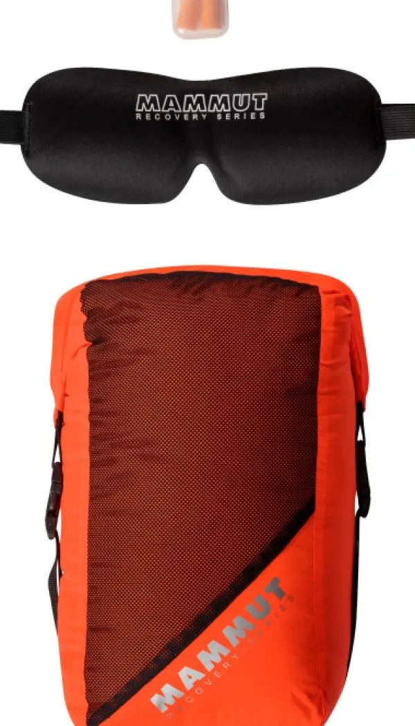 Mukana pakkauspussi, silmänaamio ja korvatulpat hyvän unen takaamiseksi.