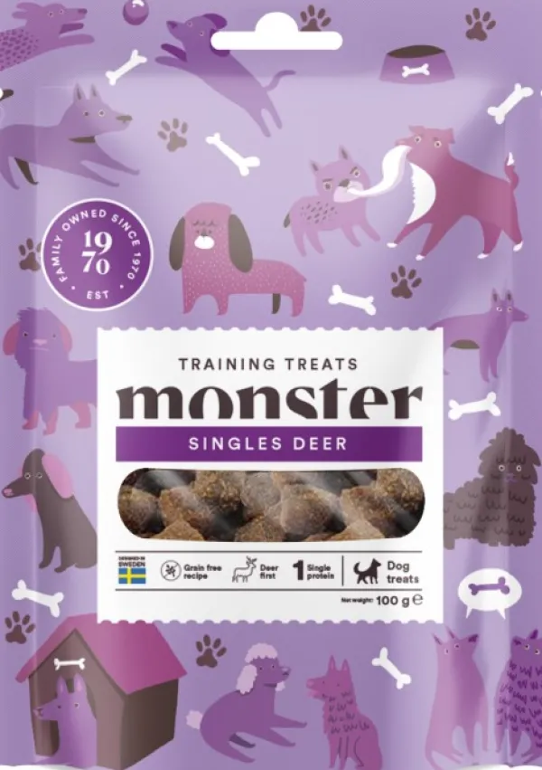 Monster Dog Training Treats on terveellinen, herkullinen, puolipehmeä ja murenematon koiranherkku. Täydellinen palkinnoksi ja helppo pitää taskussa. Kenties ne tekevät ihmeitä myös koulutuksessa. Jos eivät, niin ne ovat helppo tapa osoittaa nelijalkaiselle ystävällesi arvostusta – ja eikö se olekin tärkeintä?