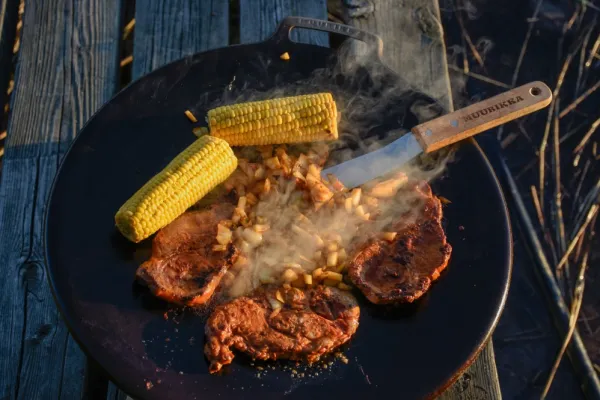 Suosituin koko Muurikka Pannuista, ihanteellinen 4-6 hengelle. Pannu on valmistettu kuumavalssatusta teräksestä. Pannu on kevyesti kaareva, jotta ruoka pysyisi pannulla paremmin. Mukana tulevat jalat saa ruuvattua pannun pohjaan niille tarkoitetuille paikoille.