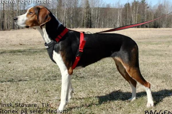 Huom! Kiristä rintaremmi napakasti, mutta jätä kaularemmi väljemmälle. Näin valjaat asettuvat paremmin koiran vetäessä ja ergonomia on parempi.