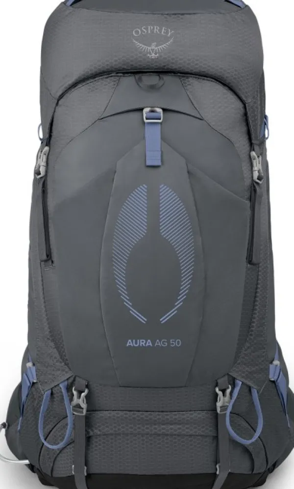 Aura AG 50 Ospreyltä on vaellusreppu, jossa on AG AntiGravity™-kantojärjestelmä ja täysin hengittävä lantiovyö. Selkäpaneelissa on saumaton verkko ja 3D-muotoilu, mikä takaa korkean ilmanvaihdon ja mukavuuden samalla, kun kantokyky pysyy erinomaisena.