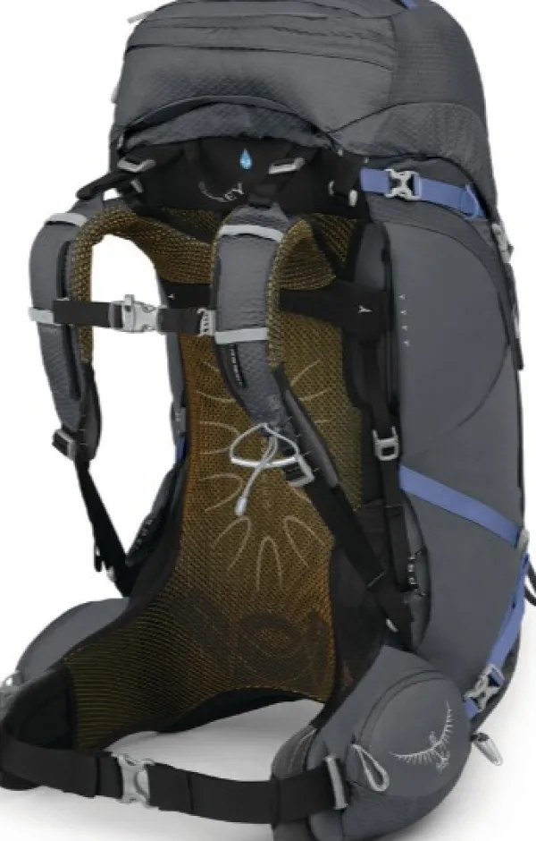 Pakkaaminen on helposti saavutettavissa kahden etuvetoketjutaskun, pohjavetoketjun ja päälliläpän kautta. Repussa on Osprey Stow-on-the-Go™-kiinnike, jonka ansiosta voit helposti kiinnittää ja irrottaa vaellussauvasi ilman, että sinun tarvitsee ottaa reppua pois selästäsi.