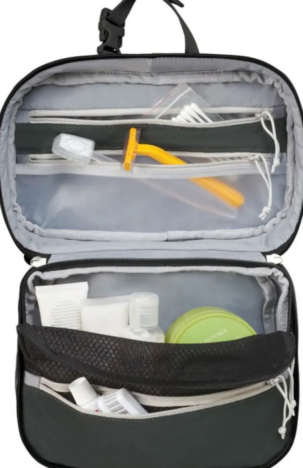 Transporter Toiletry Kit Hanging on käytännöllinen toilettilaukku Ospreyltä. Saat helposti pakattua matkalla tarvitsemasi tavarat laukun taskuihin. Laukku on valmistettu kulutusta kestävästä ja hyvin vedenpitävästä materiaalista. Clamshell-aukon ansiosta helppo ja varma pääsy päälokeroon. Päälokerossa on useita pienempiä taskuja ja lokeroita. Tässä laukussa on tukeva ripustuskoukku.