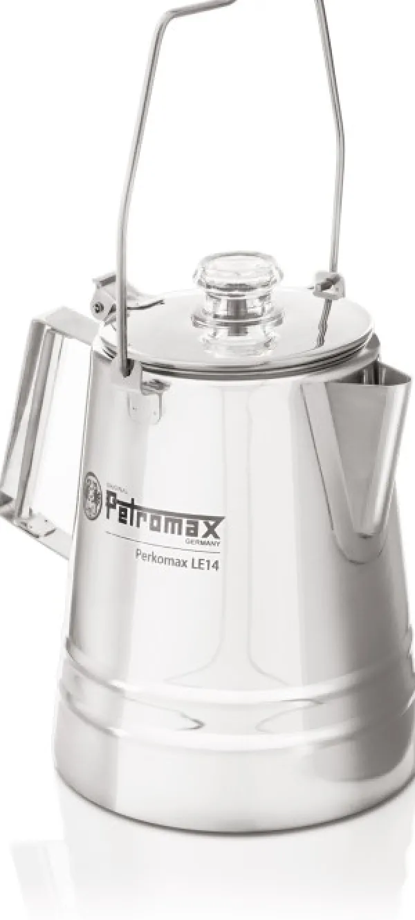 Kun astiaa lämmitetään, vesi nousee ylös pientä putkea pitkin. Pyöreä kahvisuodatin sijoitetaan putken päähän. Kuuma vesi kulkee putkea ylös kahvin päälle ja valuu sen läpi. Kahvin läpi mennyt vesi sekoittuu taas pohjalla ja nousee taas ylös. Mitä kauemmin vesi kiertää perkolaattorissa, sitä vahvempaa kahvia saadaan. Petromax-perkolaattori on valmistettu ruostumattomasta teräksestä, ja siitä on saatavilla kaksi eri kokoa. Tämä pienempi malli keittää kerralla noin 2,1 litraa (noin 14 kuppia).