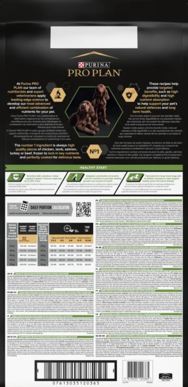 Ruoka sisältää räätälöidyt proteiini- ja rasvapitoisuudet terveen kasvun ja pitkäaikaisen terveyden tukemiseksi sekä ravintoaineita, jotka tukevat terveitä niveliä. Purina PRO PLAN Healthy Start LARGE PUPPY ATHLETIC on kehitetty suurten, atleettisten rotujen pennuille (yli 25 kg aikuisena).