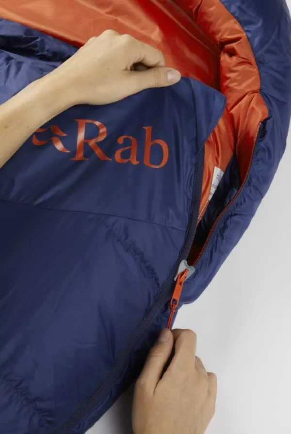 Rab Ascent 700 tarjoaa erinomaista vastinetta hintaansa nähden, ja sen täytteenä on 700 g fill power -arvon 650 eettisesti kerättyä eurooppalaista untuvaa. Päällyskangas on kestävää Pertex® Quantum -materiaalia, ja makuupussin ¾-mittaisessa vetoketjussa on plyysinen vetoketjunsuoja sekä pimeässä hohtava vedin. Alaspäin kapenevan muumiomallin ja leveän, muotoillun jalkaosan ansiosta makuupussissa on mukavasti tilaa, lämmittävyydestä tinkimättä. Muotoon ommeltu kaulaosa, sisäinen kaulus ja säädettävä huppu tarjoat lisälämpöä kolealla säällä, jotta voit nukkua yösi mukavasti.
