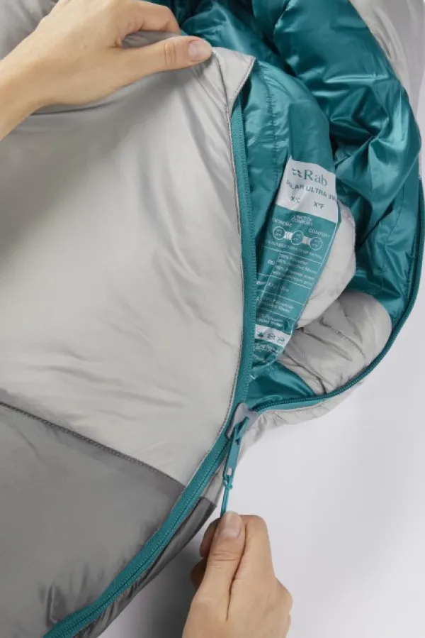 Solar Ultra -makuupussin 3-kerroksinen eristys jäljittelee untuvan suorituskykyä kevyessä ja synteettisessä rakenteessa. Rabin sisäinen TILT-tekniikka vähentää lämmön menetystä jopa 15 % parantaen lämpöeristystä merkittävästi, tinkimättä pakkauskoosta, hengittävyydestä tai painosta. Joustavat saumat pitävät eristeen paikallaan sekä minimoivat kylmien kohtien syntymisen riskin.