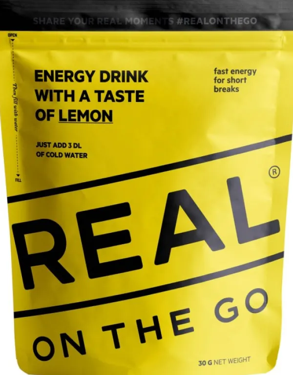 Sitruunan makuinen Real On The Go Energy Drink -energiajuoma. Juoma valmistetaan sen omaan pussiin lisäämällä vain vesi. Sopii erinomaisesti pidemmille vaelluksille ja telttaretkille lisäenergiaa antamaan.