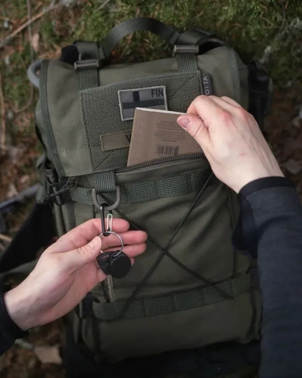 Kahakka 15 L:n kokonaiskapasiteetti on noin 20 litraa, mukaan lukien laajentuvat sivutaskut – lisäksi reppu tarjoaa monia kiinnitysvaihtoehtoja lisävarusteille. Tämä erittäin kompakti reppu tarjoaa tarpeeksi tilaa henkilökohtaiselle ja tehtävään liittyvälle varustukselle, kuten sadevaatteille.