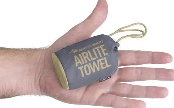 Sea To Summit Airlite Towel on monikäyttöinen pyyhe, joka sopii mainiosti sekä matkoille, vaelluksille ja treeneihin. 50 % kevyempi kuin Sea to Summits Pocket Towel. Pyyhe on erittäin kompakti ja poikkeuksellisen nopeasti kuivuva. Polyesterista ja nylonista valmistettu mikrokuitumateriaali imee kolme kertaa oman painonsa verran ja on helppo kiertää kuivaksi.
