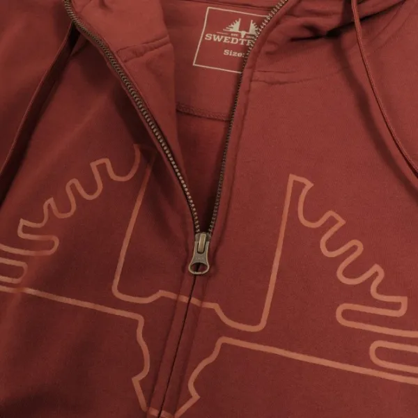 Hupparissa on täyspitkä vetoketju edessä, kiristysnyörillä varustettu huppu, joustavat hihansuut ja kaksi taskua. Siinä on iso printtikuvio rinnassa ja pienempi Swedteam-printti selässä.