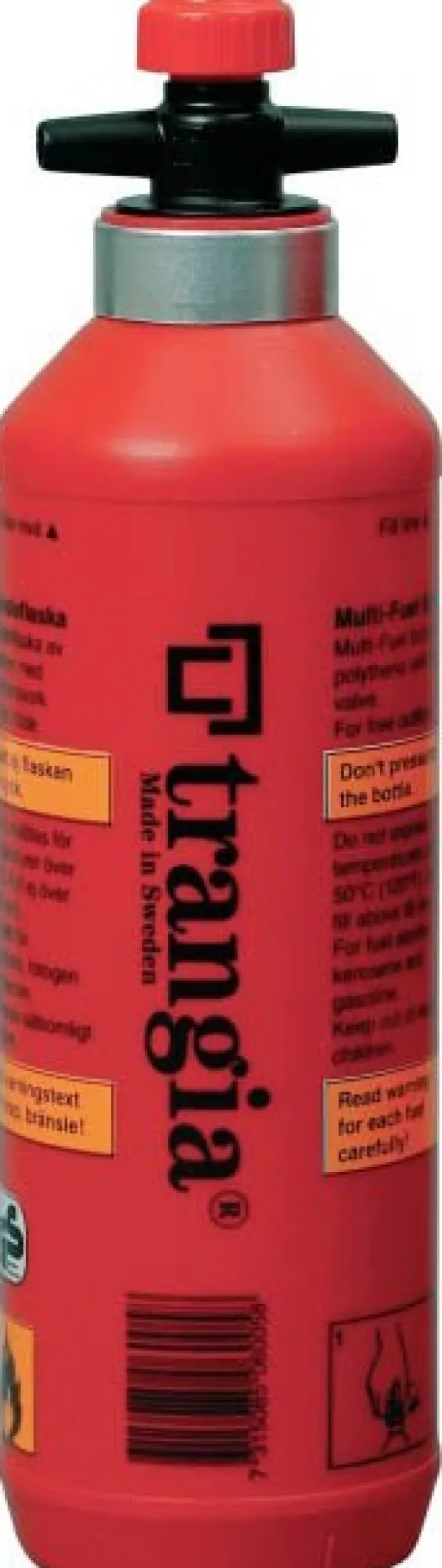 Kätevä muovinen polttoainepullo kaatokorkilla Trangia -keittimiin. Pullo varustettu mitta-asteikolla. Pullo ei sisällä polttoainetta.