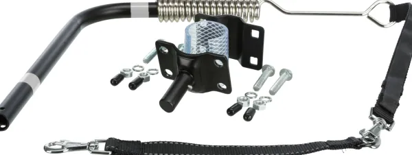 Telineessä on heijastinnauha joka varmistaa lenkkeilevän kaksikon näkyvyyden myös pimeällä. Telineen asentaminen on helppoa. Teline kiinnitetään pyörän satulan alla olevaan tankoon ja koira kiinnitetään valjaistaan talutintelineessä olevaan teräslenkkiin. Vahva nylontalutin kuuluu pakkaukseen. Kiinnikkeen kiinnittäminen satulan tankoon vaatii työkaluja. Telineen irrottaminen kiinnikkeestä onnistuu helposti napsauttamalla. Jos haluat käyttää talutinta useammassa pyörässä, tilaa Talutustelineen mukana tulee yksi pidike.