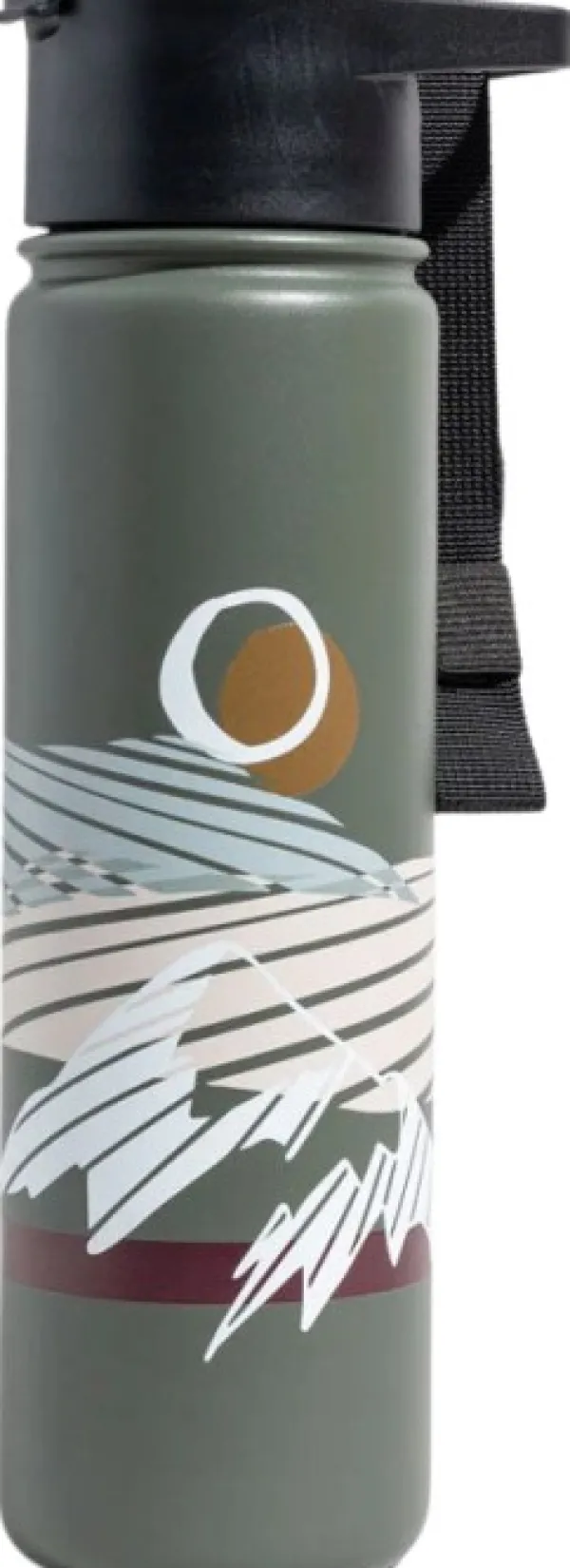 Insulated Steel Bottle -pullossa on sivulla irrotettava kahva, jonka avulla liikuttelet pulloa näppärästi. Kannen muotoilu ja materiaali minimoi vuotoriskin. Ei sisällä BPA:ta.