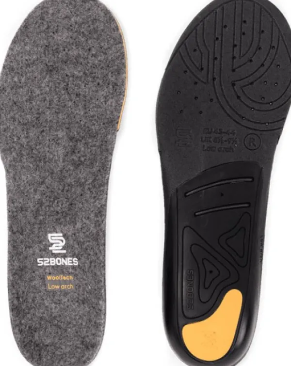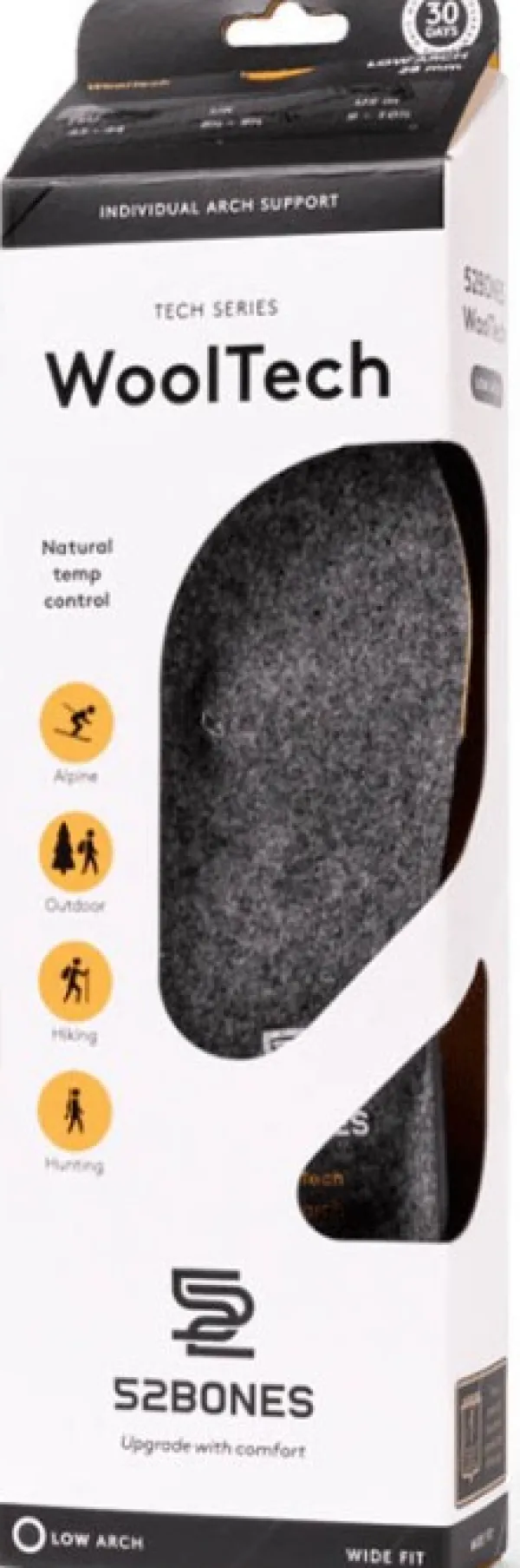 52Bones WoolTech on rakennettu villapohjallinen, jossa on kolme eri jalkaholvin korkeutta optimaalisen tuen ja maksimaalisen iskunvaimennuksen takaamiseksi. Pohjallinen on hieman leveämpi ja sopii tukevampiin kenkiin.
