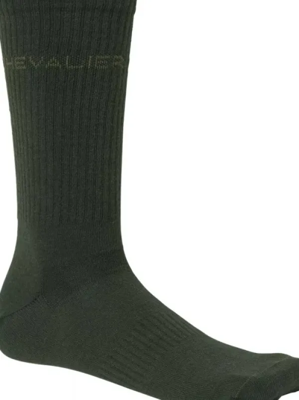 Chevalierin laatusukat, joissa korkeahko varsi sekä ohuet, hiertämättömät saumat. Väriltään vihreät.