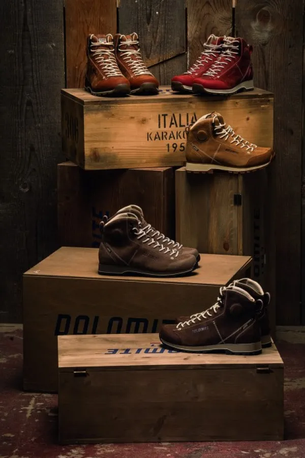 Dolomite 54 High on tyylikäs, puolikorkea nilkkuri öljyttyä nupukkia ja vedenpitävällä Gore-Tex-kalvolla, joka antaa jalan hengittää. Dolomite on tunnettu tuotteidensa mukavuudesta. Tämä kenkä on yhtä mukava kevyemmillä vaellusretkillä metsissä kuin arkikäytössä kaupungilla. Päällinen on öljyttyä nupukkia, joka antaa retrotyylisen ulkonäön kengälle. Nämä kengät ovat saaneet inspiraationsa italialaisen Dolomiten vanhanaikaisista kiipeily- ja vaelluskengistä. Nauhoitus ylettyy pitkälle jalkapöytää, mikä mahdollistaa yksilöllisen istuvuuden.