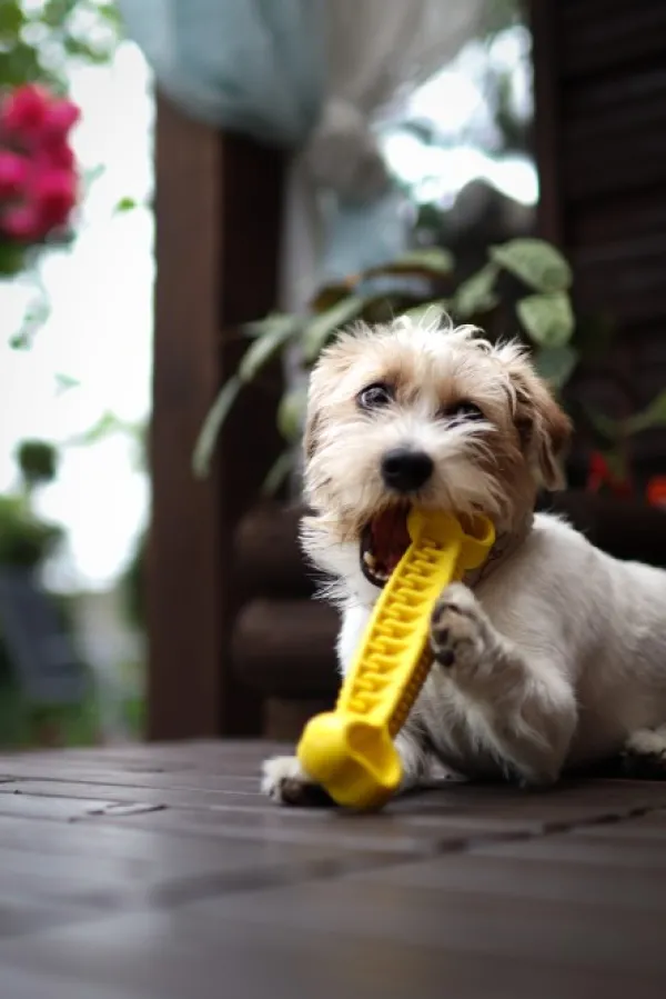 Lelun muotoilu edistää koiran hyvää suunterveyttä pureskelun yhteydessä. Lelun sisään voidaan myös piilottaa herkkupaloja. Lelun pureskelu voi lievittää koiran stressiä.