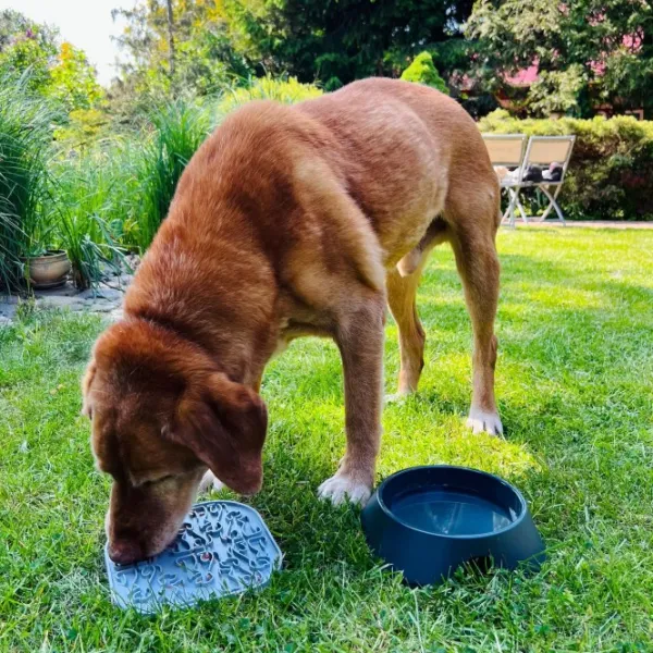 Koiran kupissa on liukumattomat silikonijalat (toimitetaan pussissa kulhon alla).