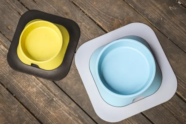 Koiran kupissa on liukumattomat silikonijalat (toimitetaan pussissa kulhon alla).