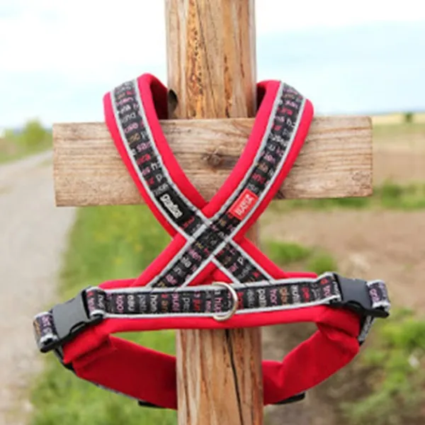 - Pehmeät, raikkaanväriset valjaat koiralle