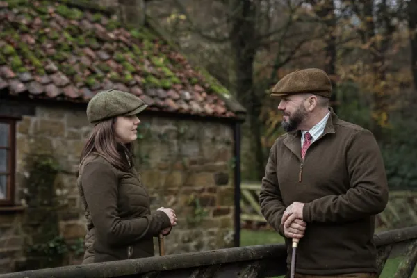 Paidassa on pystykaulus, puolipitkä vetoketju nahkaisella vetolenkillä sekä klassinen ruudullinen kuvio sisäpuolella.